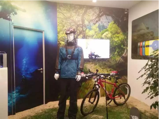 图中人帽子和胸前的摄像头可以记录下旅行过程中的所见所闻,单车上也可以装上摄像头来记录。