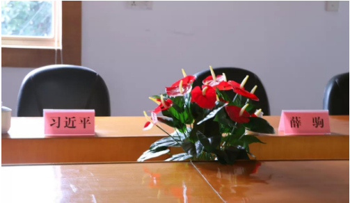 2003年1月29日,刚刚担任浙江省委书记的习近平同志,在原省委书记薛驹薛书记陪同下,为横坎头村专门召开座谈会,详细听取他们汇报的会议室。当时,习近平总书记坐在这个位子,提出了“要把梁弄建设成为全国革命老区全面奔小康样板镇”的重要指示。