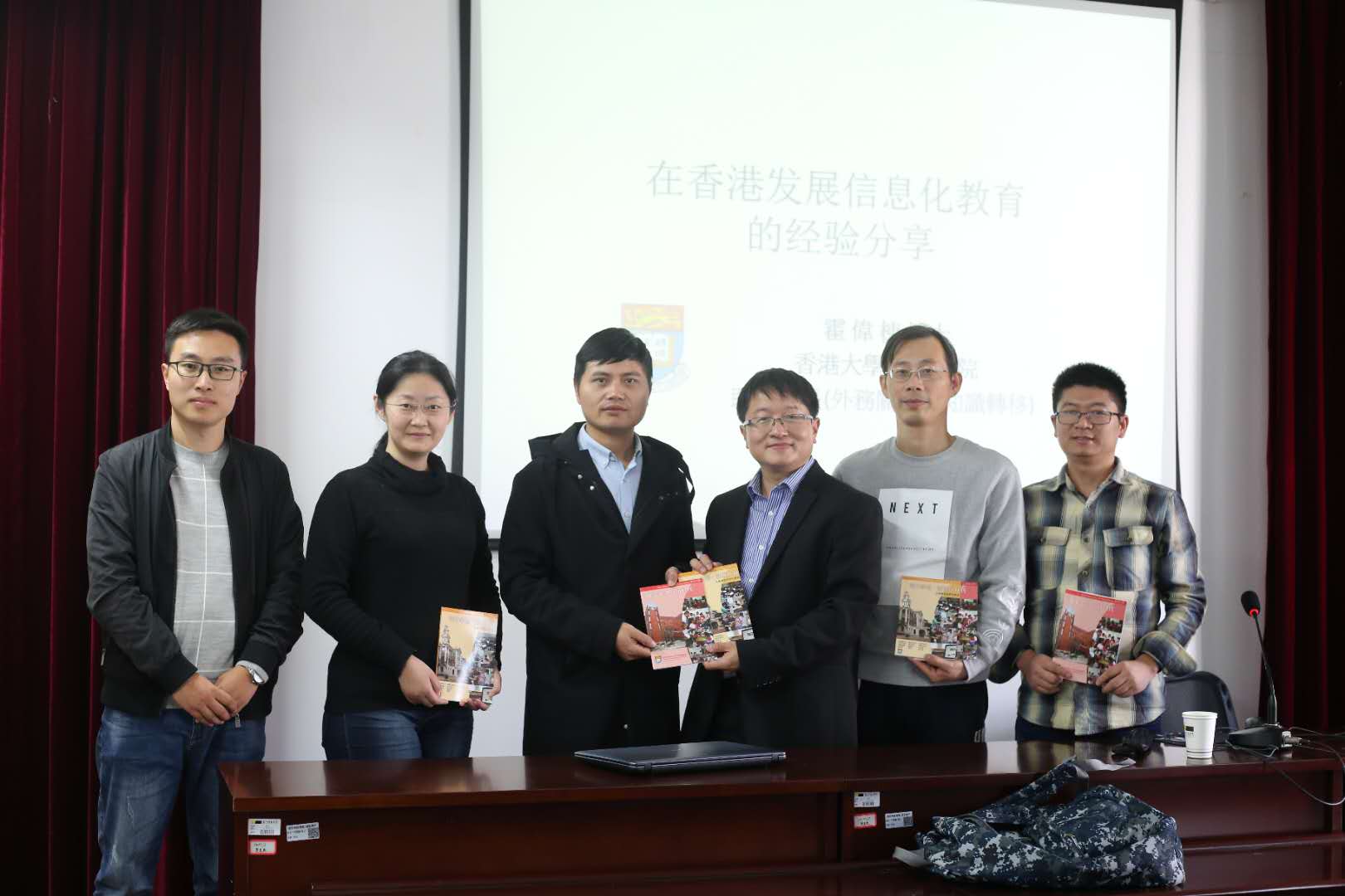 讲座最后霍博士还与听课老师进行了赠书以及合影的活动,在一片热烈的掌声中讲座圆满结束。