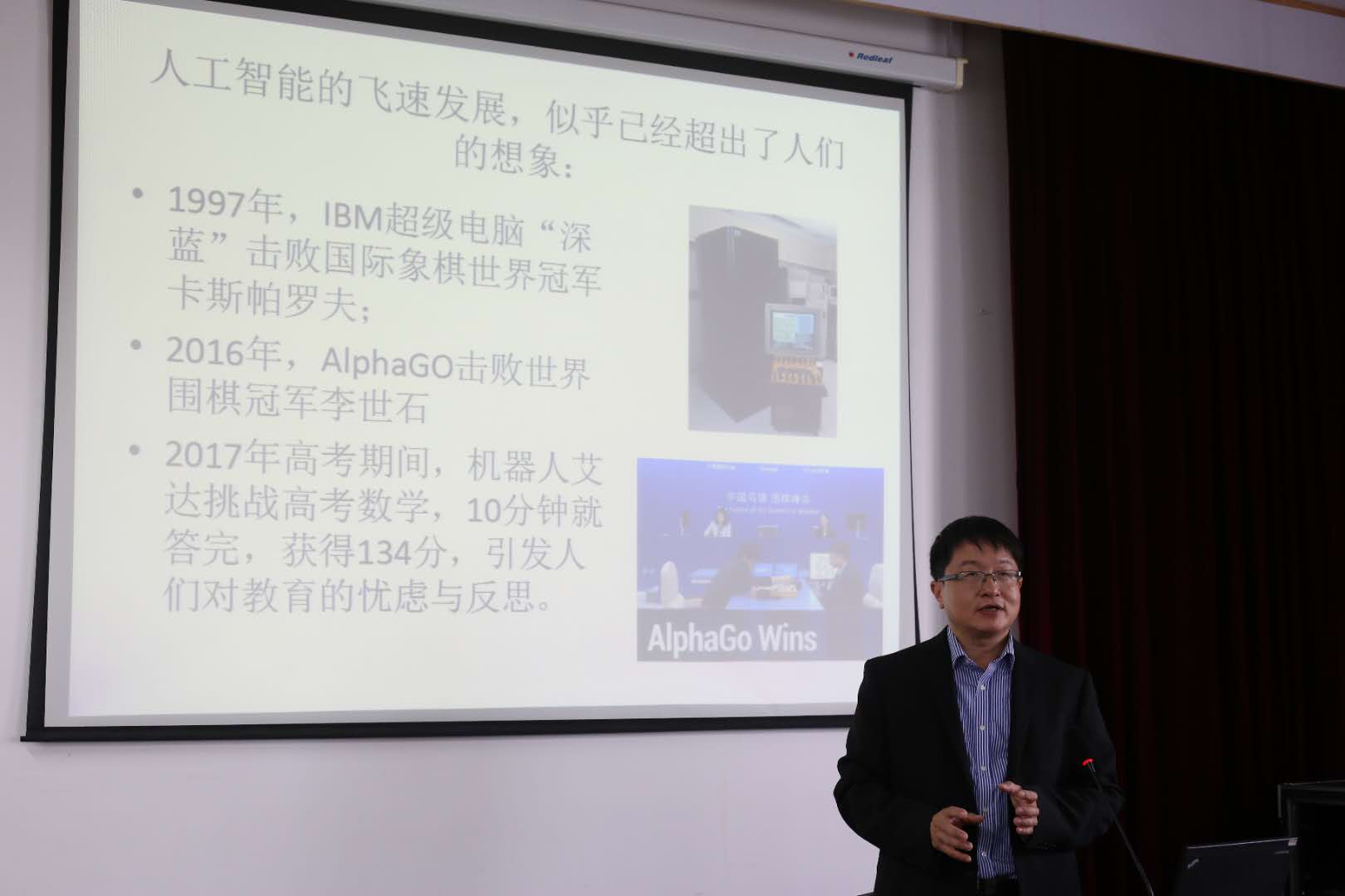 “人工智能的飞速发展,似乎已经超出人们的想象。”讲座伊始霍博士就给我们拟定了一个基调,他认为随着人工智能的飞速发展将对我们的生活产生巨大的冲击,有许多职业现在都有被人工智能取代的危机,我们面对人工智能应该主动让其与我们的实际相结合,灵活的去运用人工智能及高新技术于各行各业之中。