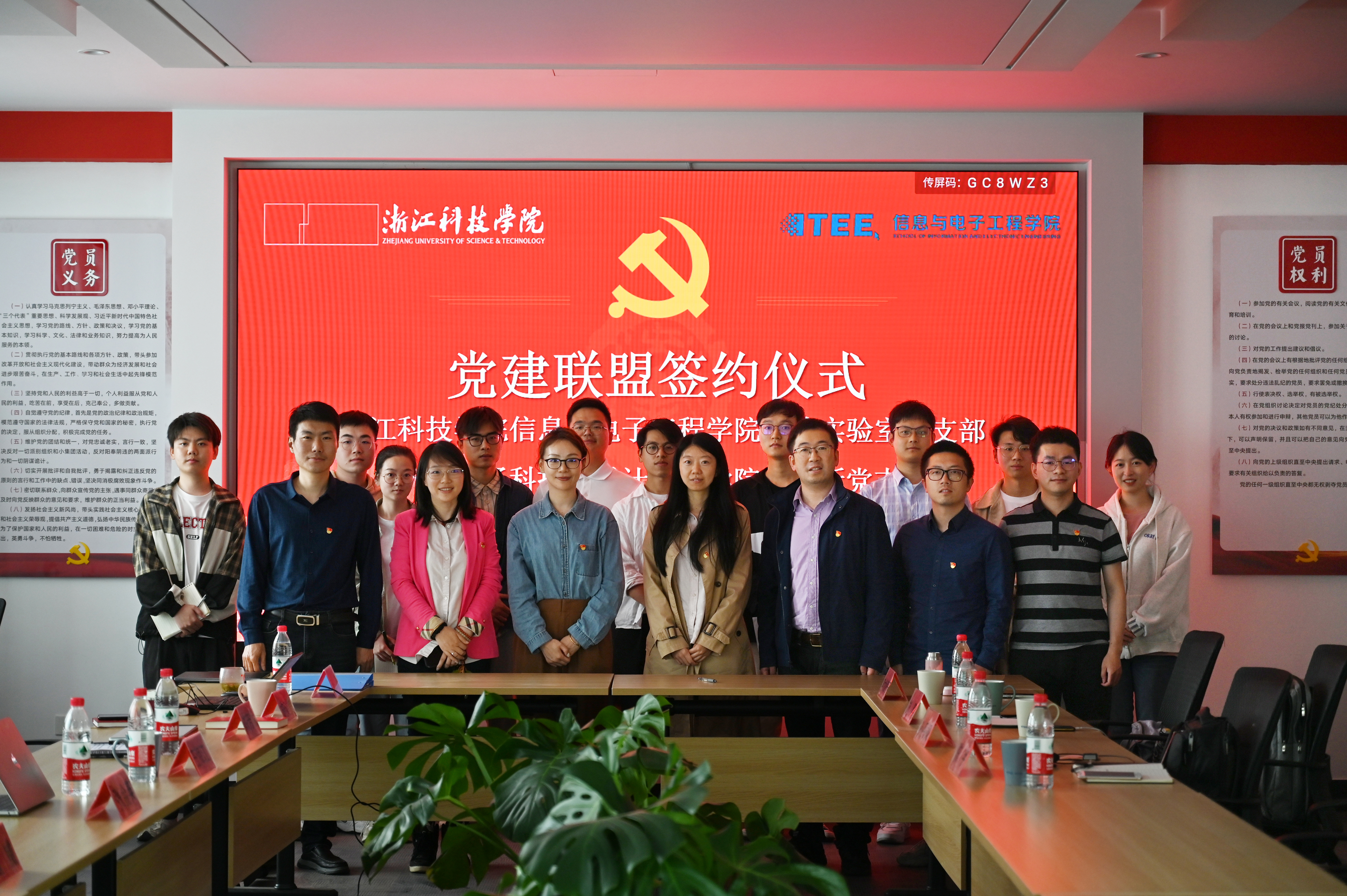 4月21日,信息学院比特实验室党支部与杭州电子科技大学计算机学院智能所党支部在信息学院党员之家签订党建联盟,并召开“深入学习贯彻习近平新时代中国特色社会主义思想主题教育”专题联学研讨会。信息学院党委书记张蕾、党委副书记施建腾、比特实验室党支部书记陈芳妮、杭州电子科技大学计算机学院智能所党支部书记李尤慧子出席本次签约仪式,智能所党支部支委、比特实验室全体党员参加会议。